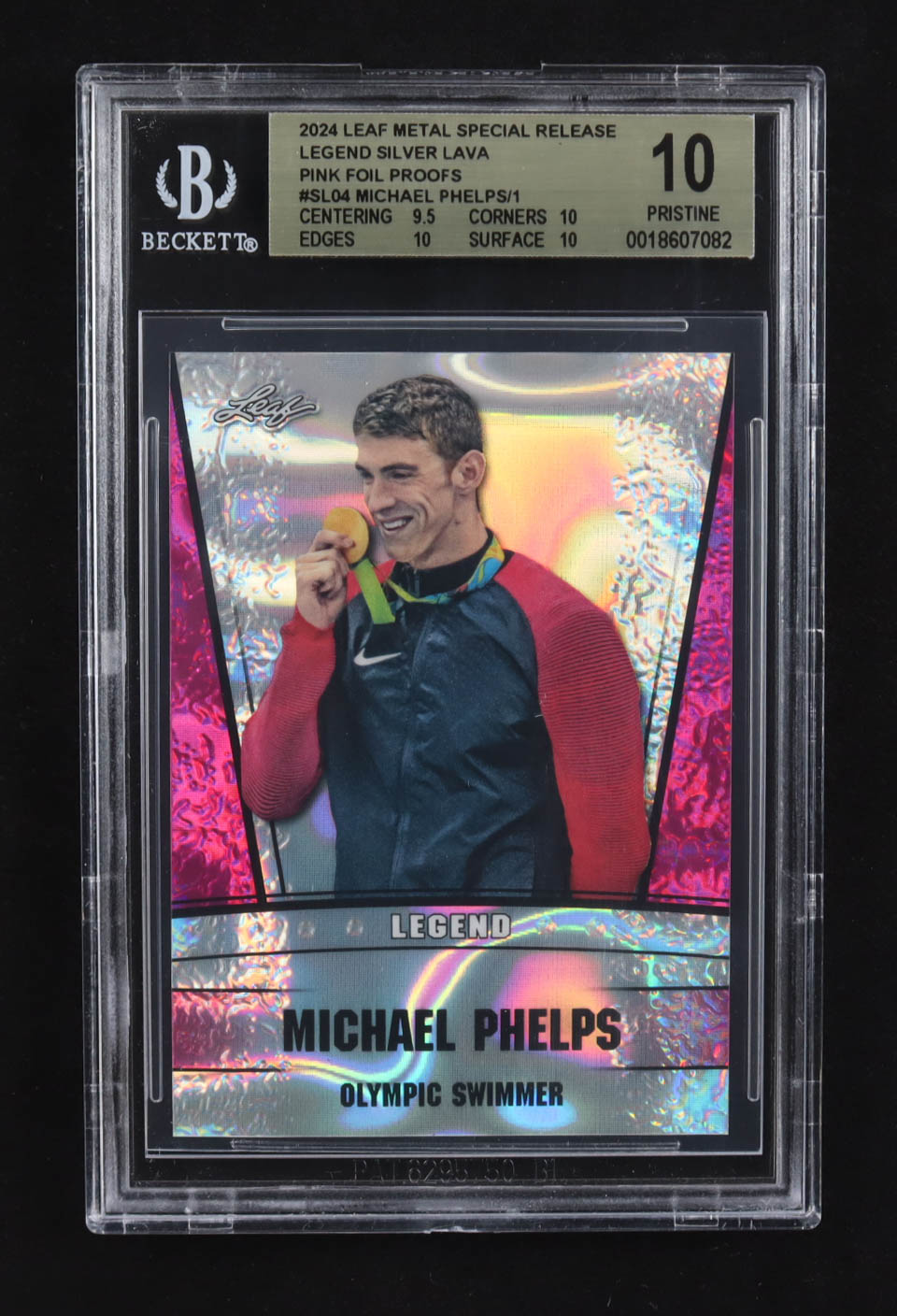 Michael Phelps 2024 Leaf Metal Special Release Legend Silver Lava Pink Foil Proofs #SL04 (BGS 10)