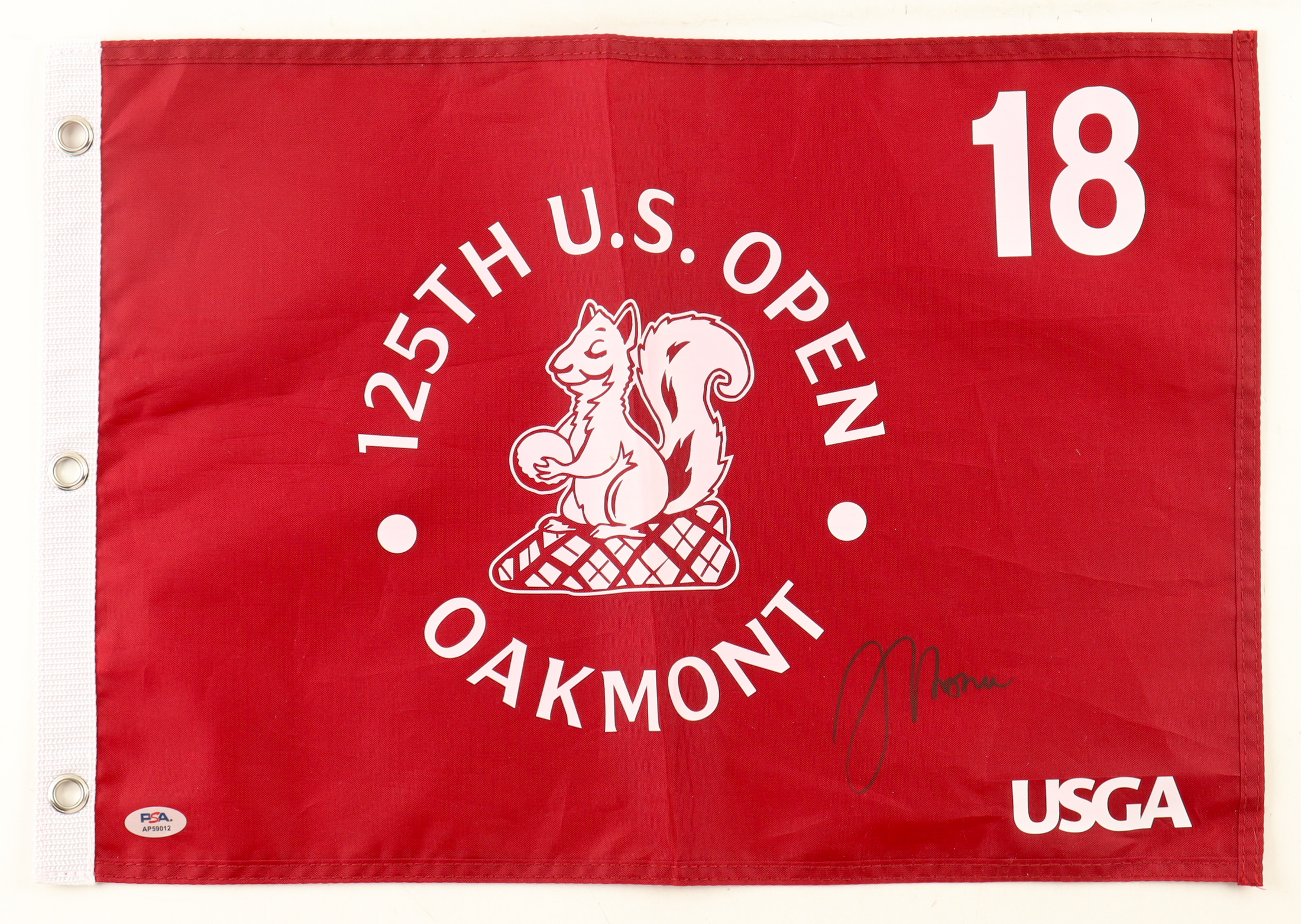 Justin Thomas Signed 2025 "125th U.S. Open Oakmont" Golf Pin Flag (PSA)