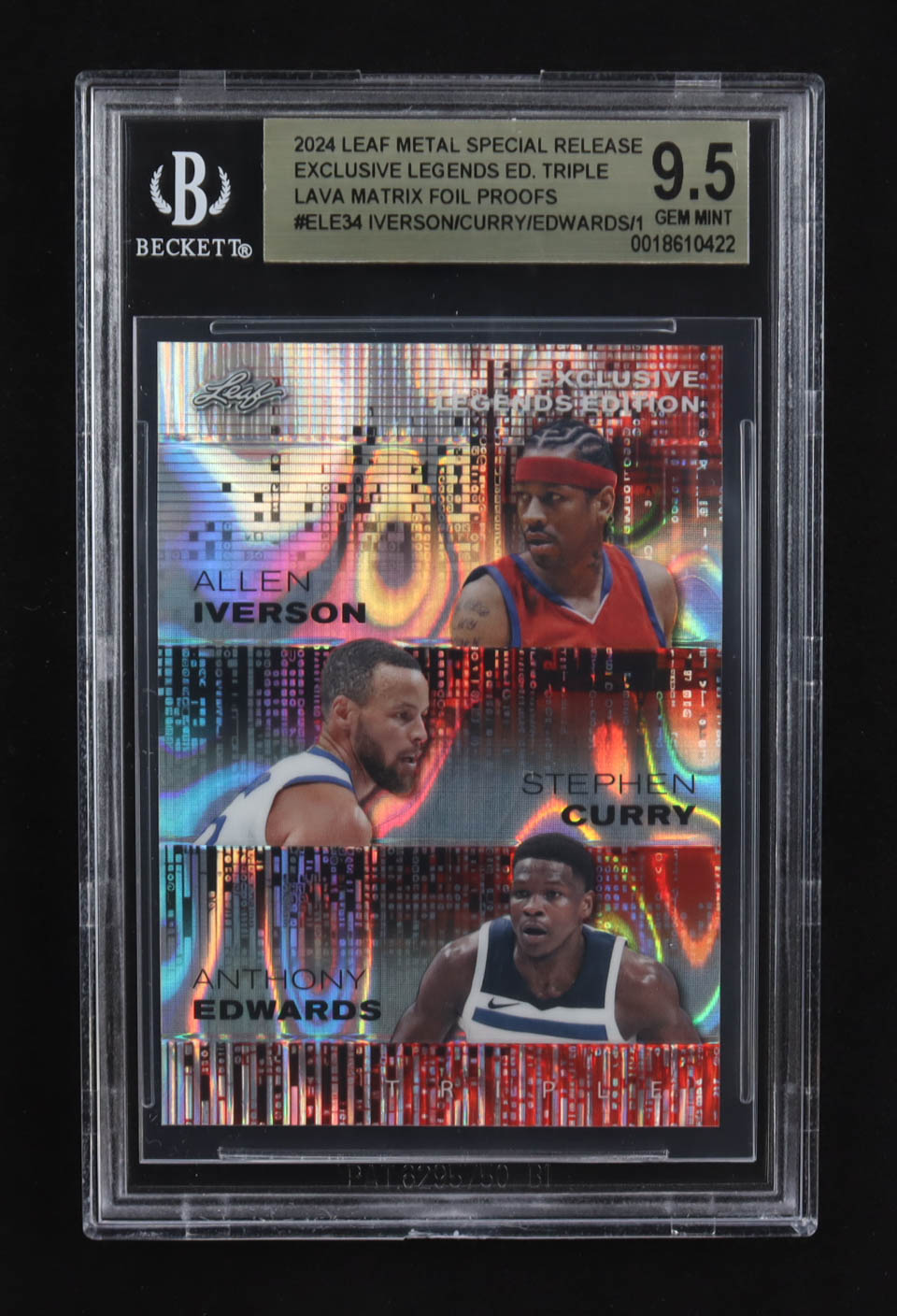 Allen Iverson / Anthony Edwards / Stephen Curry 2024 Leaf Metal Special Release Exclusive Legends Ed. Triple Lava Matrix Foil Proofs #ELE34 (BGS 9.5)