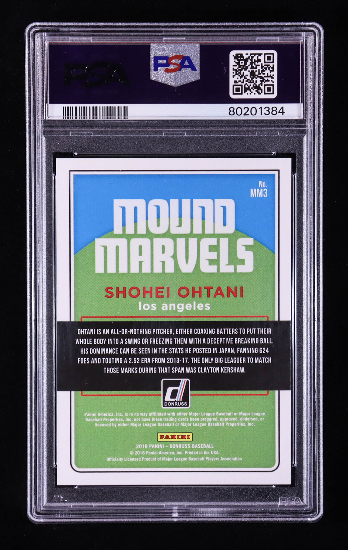 Shohei Ohtani 2018 Donruss Mound Marvels Crystals #3 RC (PSA 10)