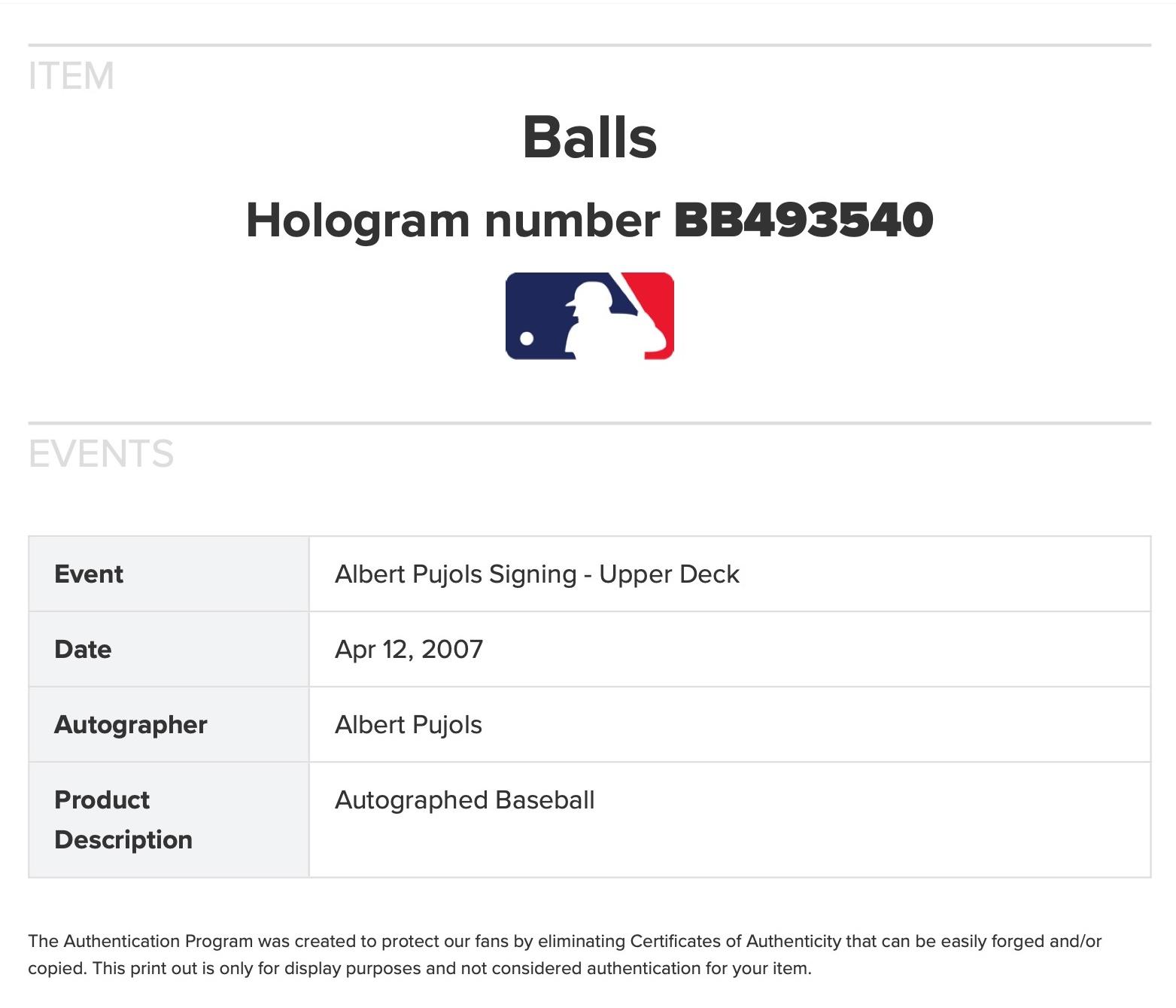 Authentication: UDA COA & MLB Hologram