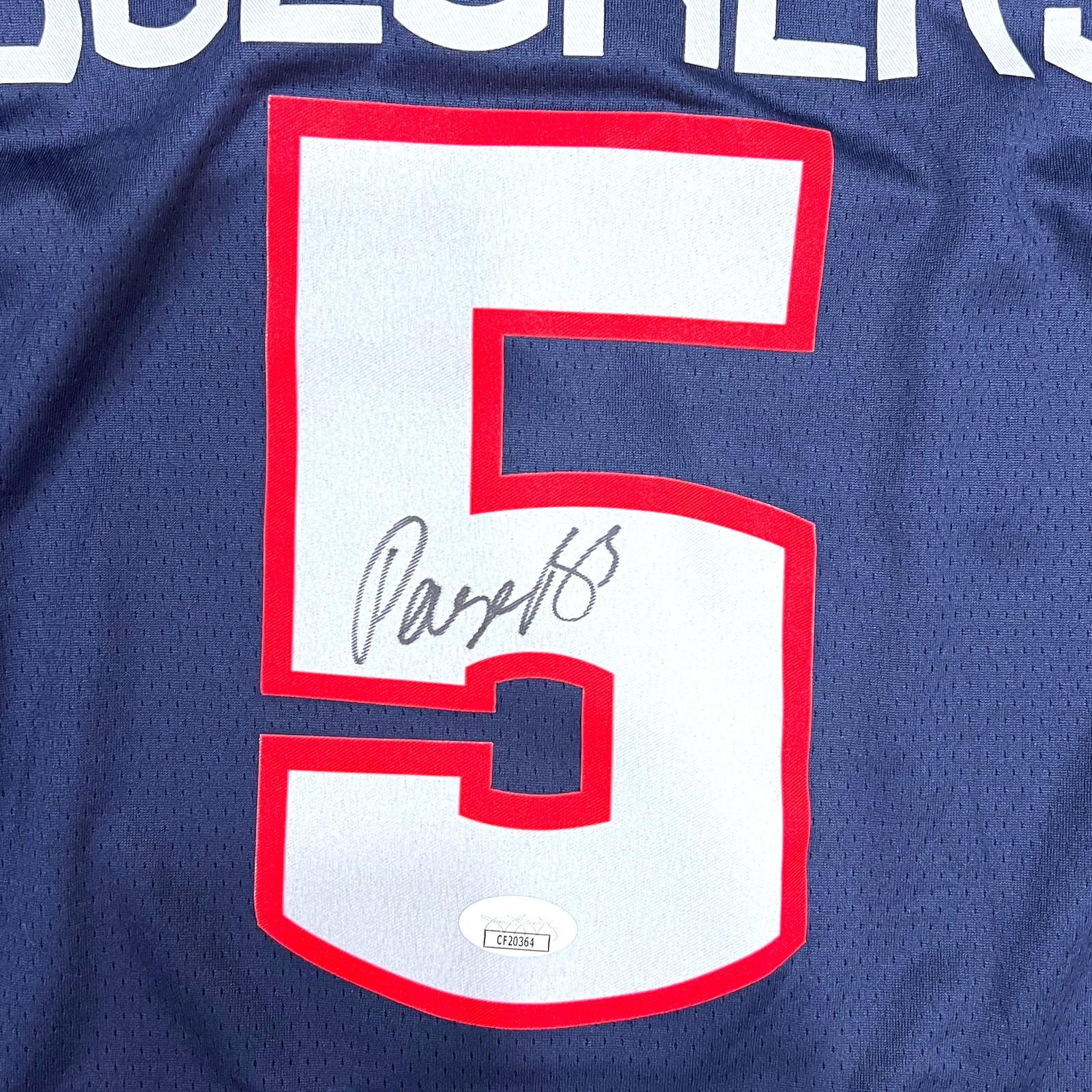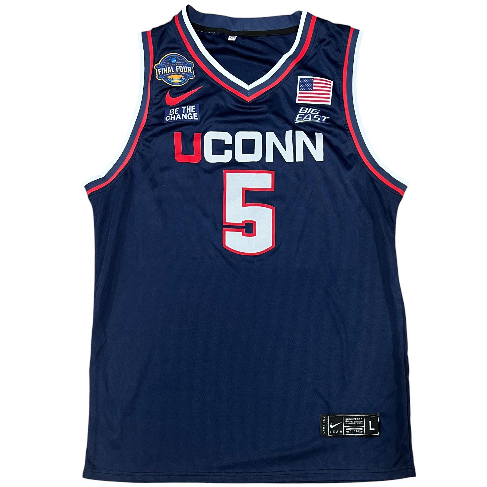 Nike jersey with everything pressed on, size L. Hand-signed by Paige Bueckers.