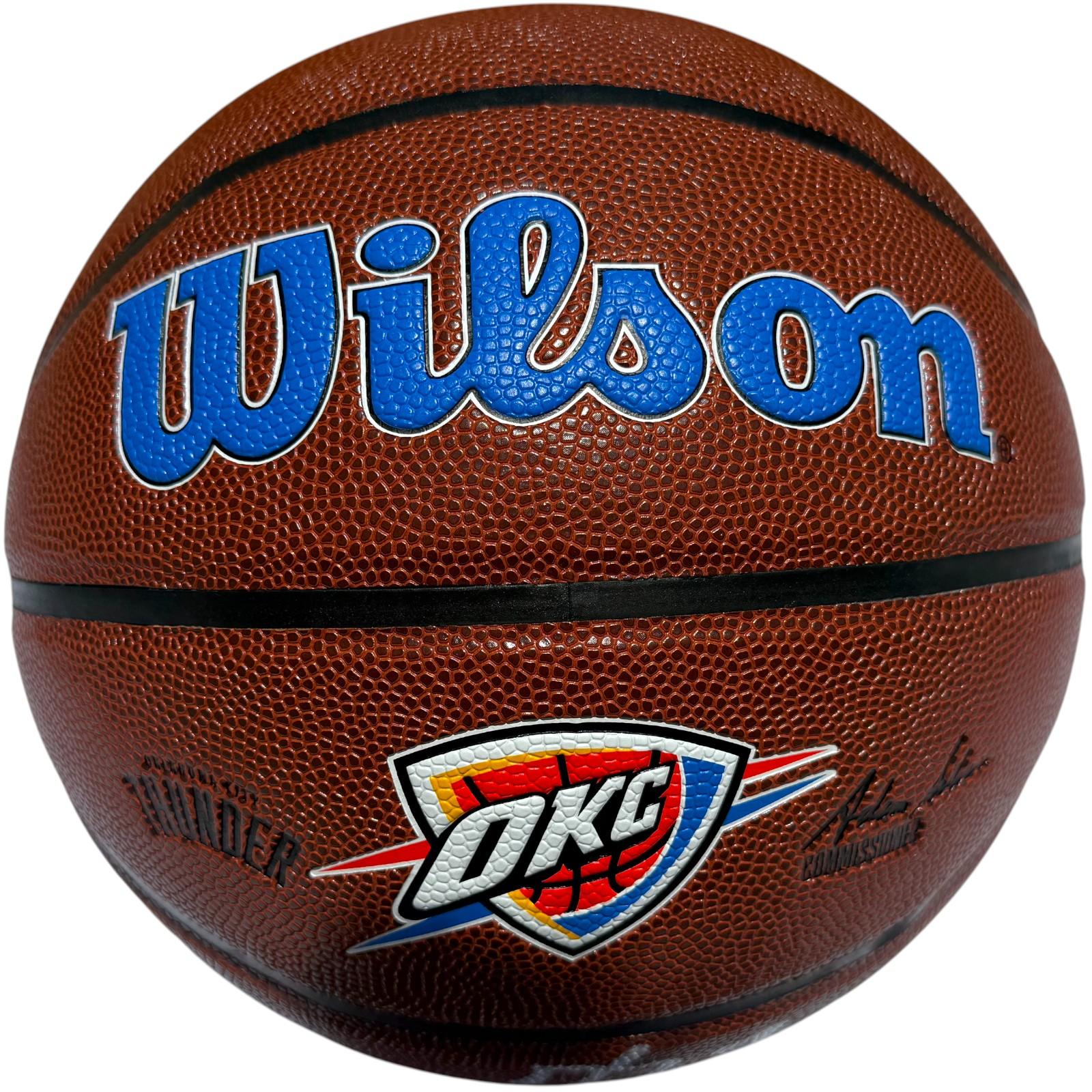 Wilson Oklahoma City Thunder Indoor/Outdoor NBA Basketball has been hand-signed by Shai Gilgeous-Alexander.