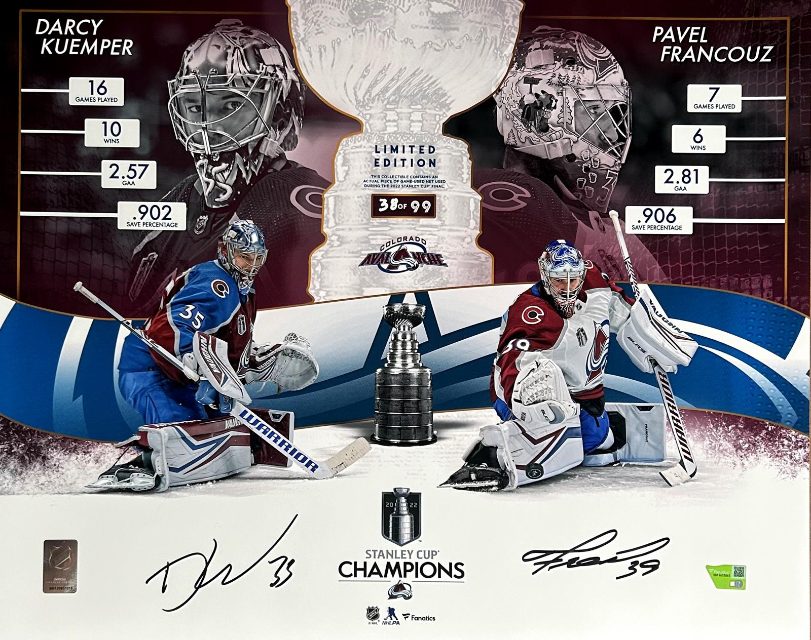 Photo measures 16" x 20" and has been hand-signed by Darcy Kuemper and Pavel Francouz (Colorado Avalanche).