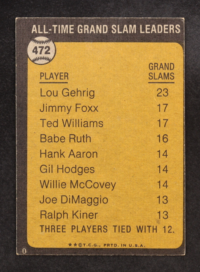 Lou Gehrig 1973 Topps #472 / All-Time Grand Slam Leader