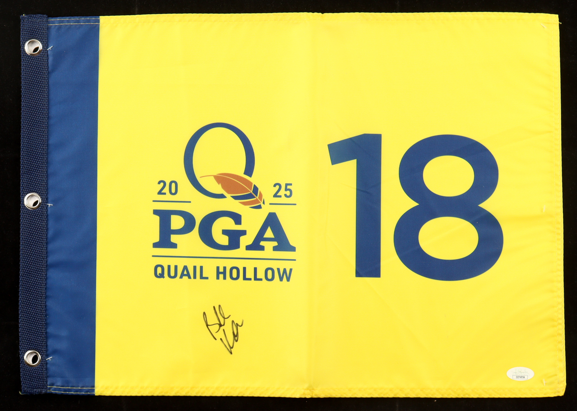 Pin flag measures approximately 14" x 20" in size and has been hand-signed by Brooks Koepka.