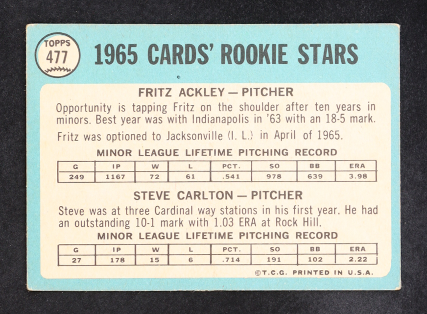 Fritz Ackley / Steve Carlton 1965 Topps #477 Rookie Stars RC