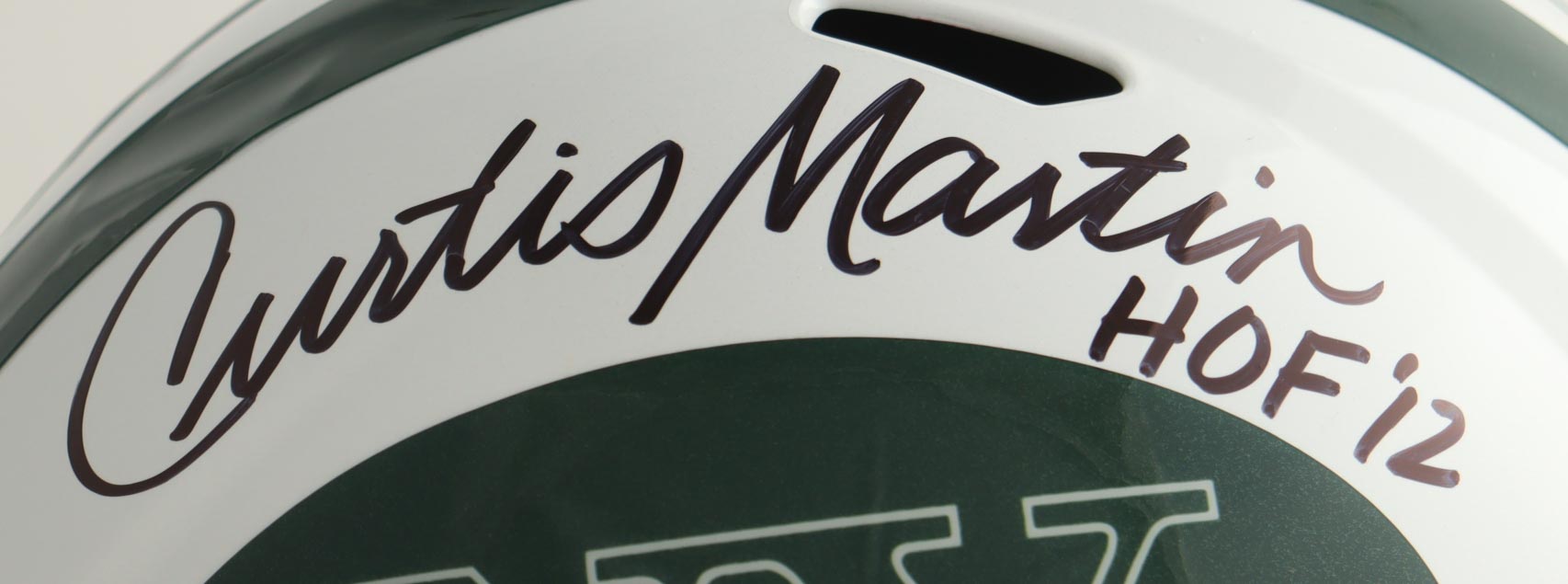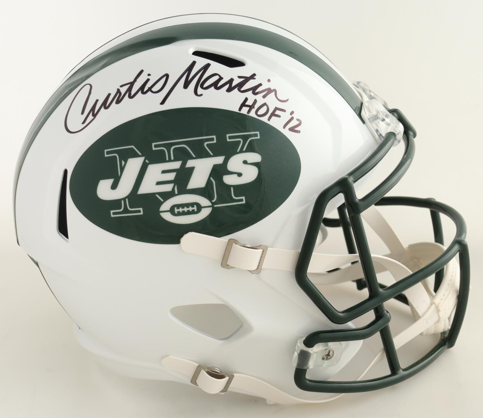 Riddell New York Jets full-size speed replica helmet. Hand-signed by Curtis Martin (HOF).