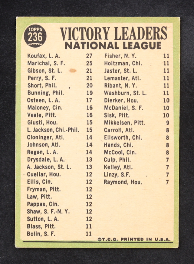 Sandy Koufax / Juan Marichal / Bob Gibson / Gaylord Perry 1967 Topps #236 / NL Pitching Leaders