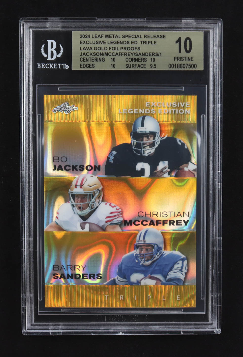 Christian Mccaffrey / Bo Jackson / Barry Sanders 2024 Leaf Metal Special Release Exclusive Legends Ed. Triple Lava Gold Foil Proofs (BGS 10)
