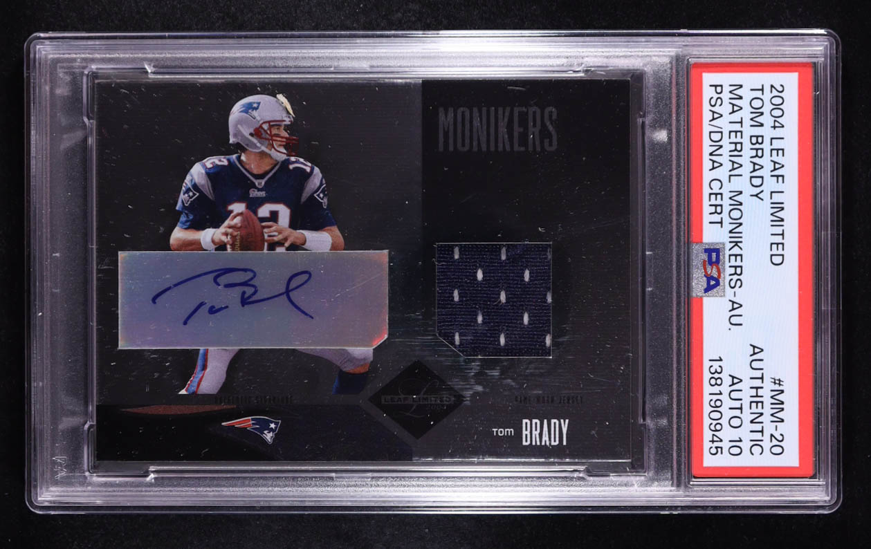 Tom Brady 2004 Leaf Limited Material Monikers #MM20 #18/25 (PSA Authentic | Auto 10)