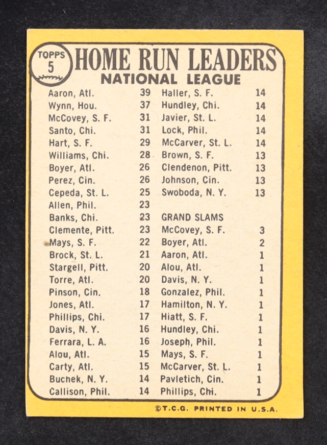Hank Aaron / Jim Wynn / Ron Santo / Willie McCovey 1968 Topps #5 NL Home Run Leaders