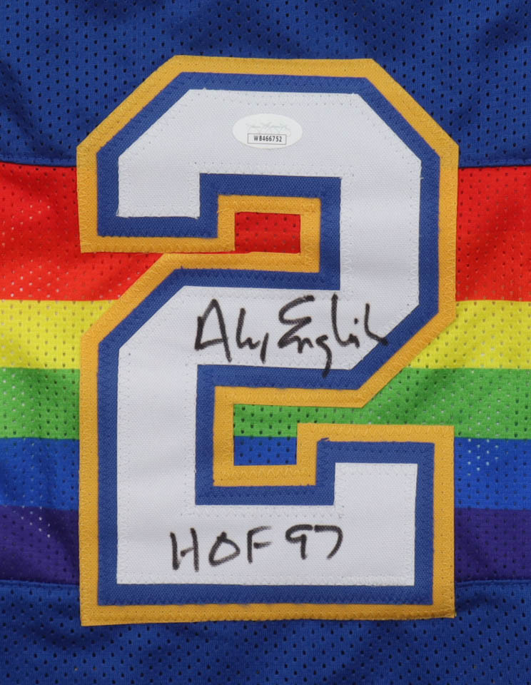 Alex English Signed Jersey Inscribed "HOF 97" (JSA)