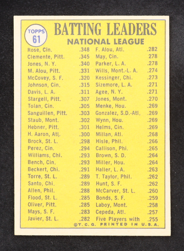 Pete Rose / Bob Clemente / Cleon Jones 1970 Topps #61 NL Batting Leaders