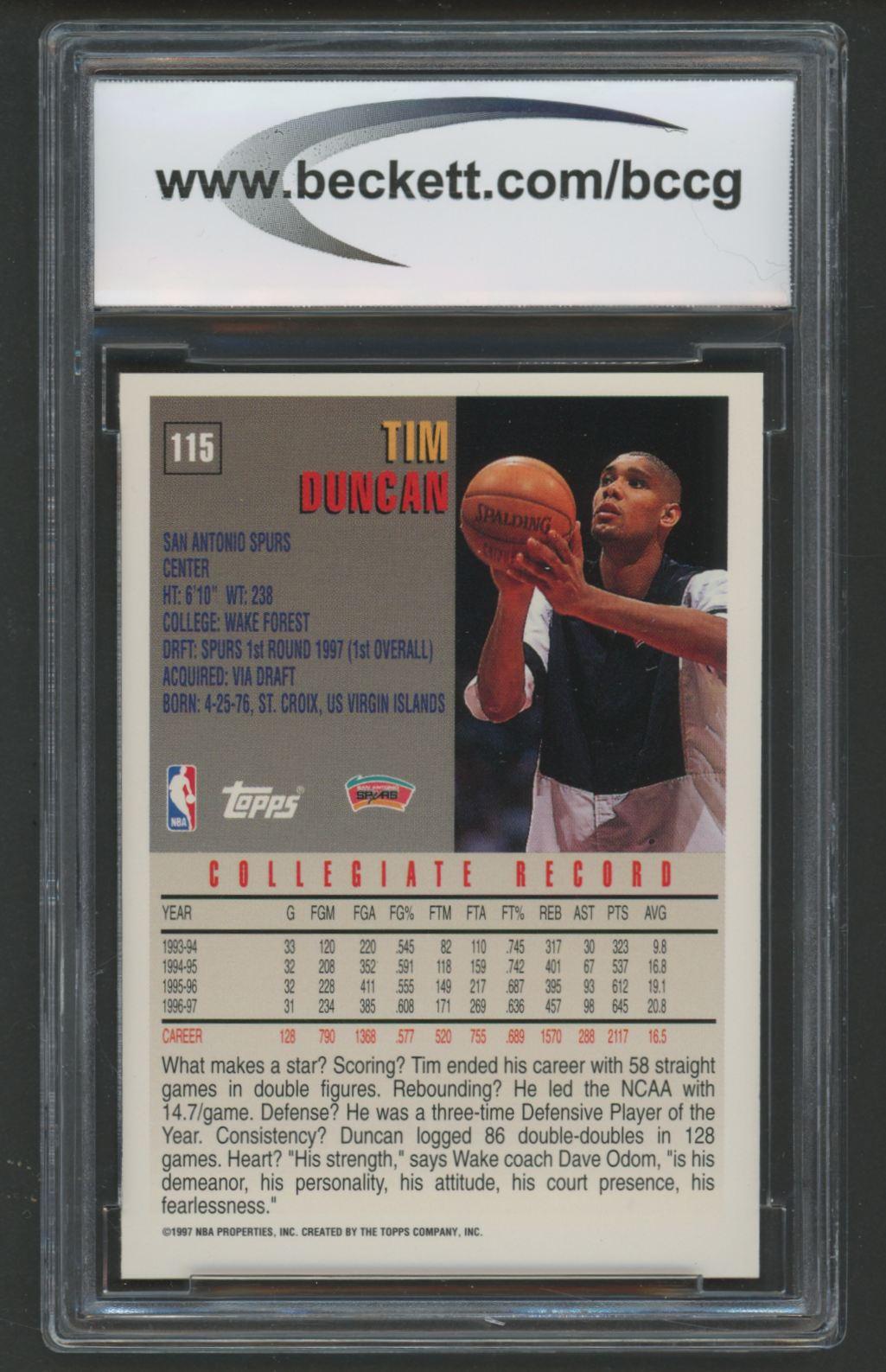 Tim Duncan 1997-98 Topps #115 RC (BCCG 9)