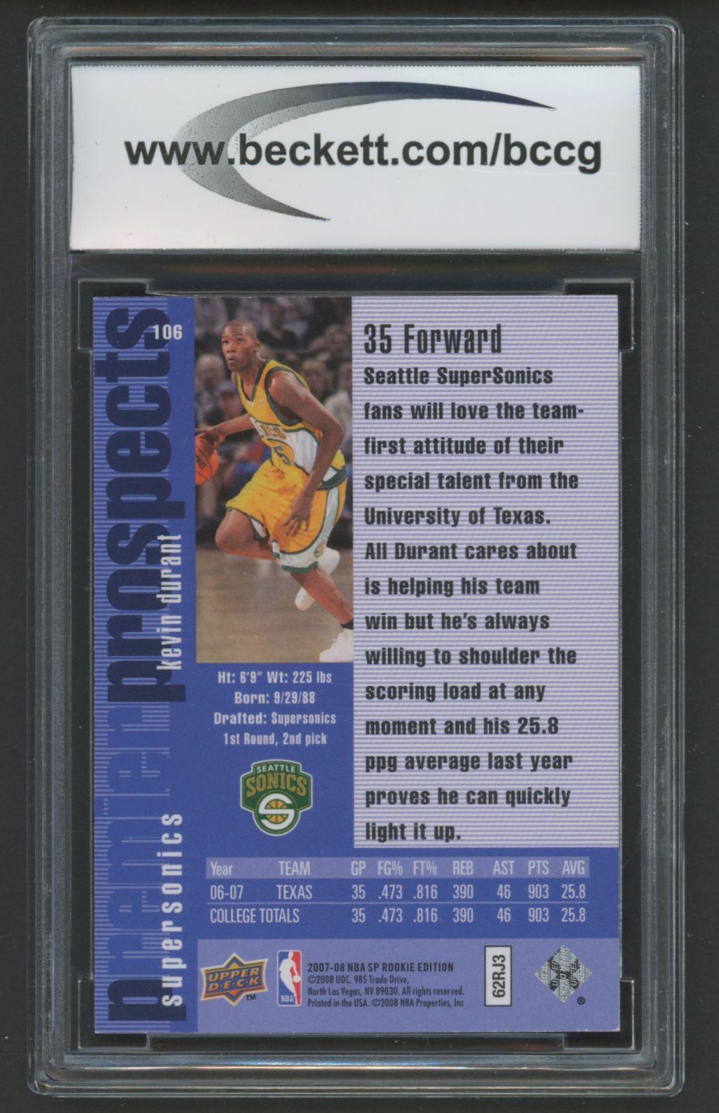 Kevin Durant 2007-08 SP Rookie Edition 96-97 #106 (BCCG 9)