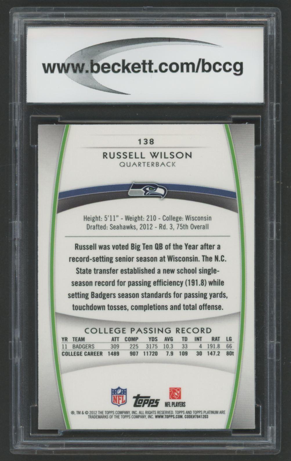 Russell Wilson 2012 Topps Platinum Black Refractors #138 RC (BCCG 10)