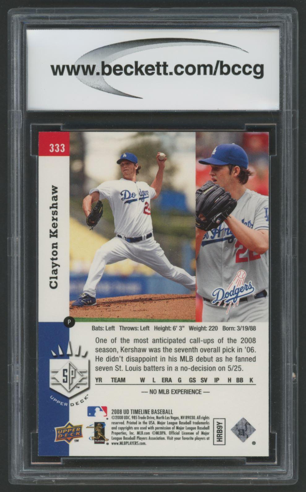 Clayton Kershaw 2008 Upper Deck Timeline #333 RC (BCCG 10)
