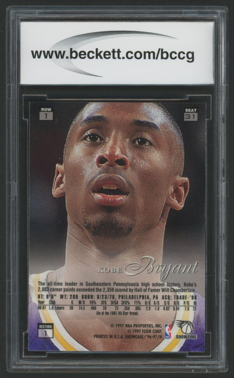 Kobe Bryant 1996-97 Flair Showcase Row 1 #31 RC (BCCG 9)