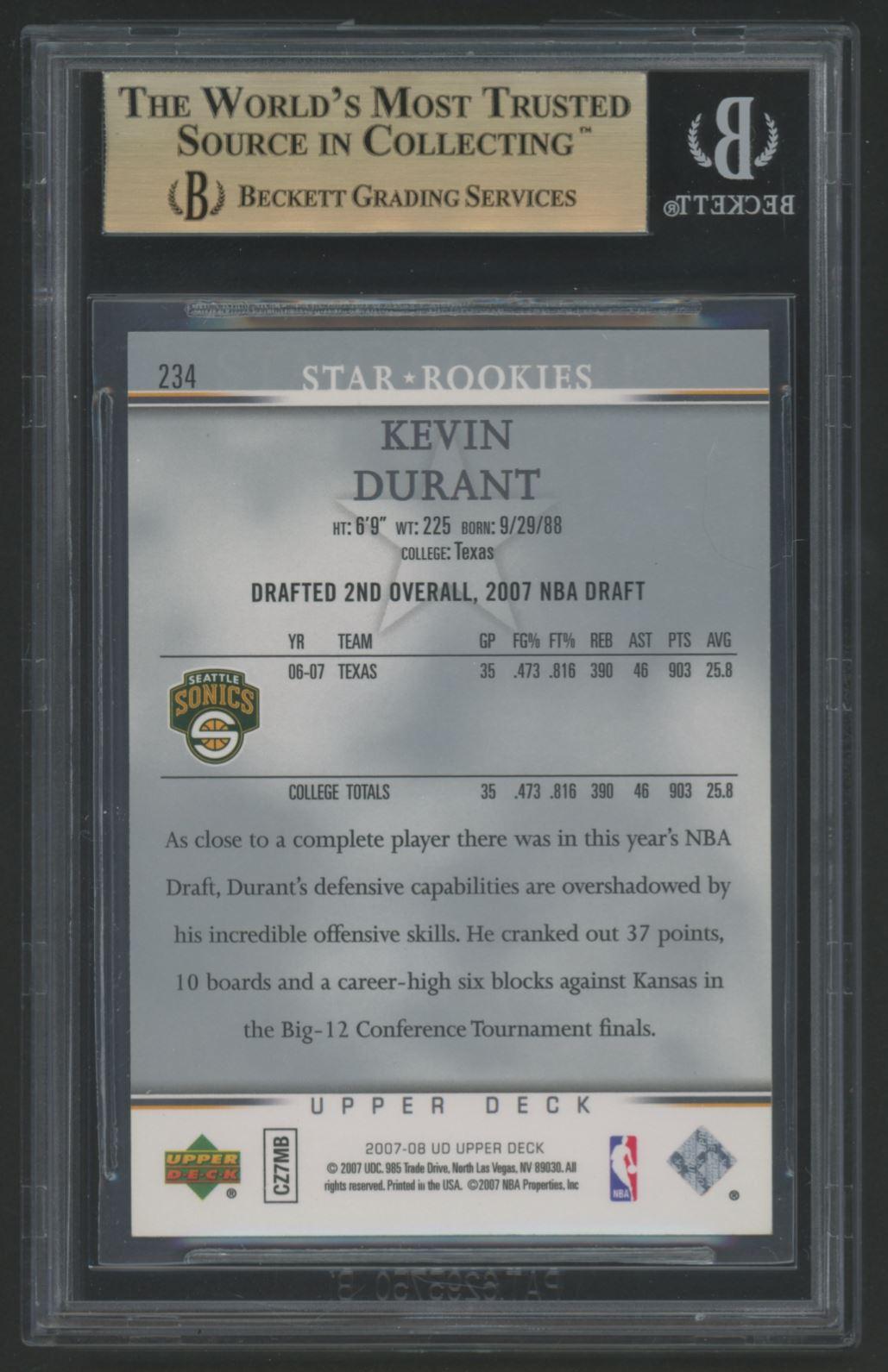 Kevin Durant 2007-08 Upper Deck #234 SP RC (BGS 9.5)