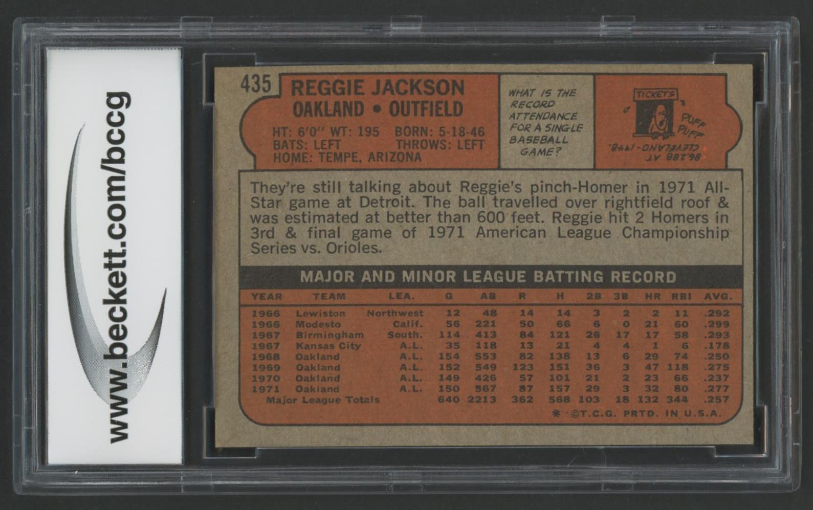 Reggie Jackson 1972 Topps #435 (BCCG 9)