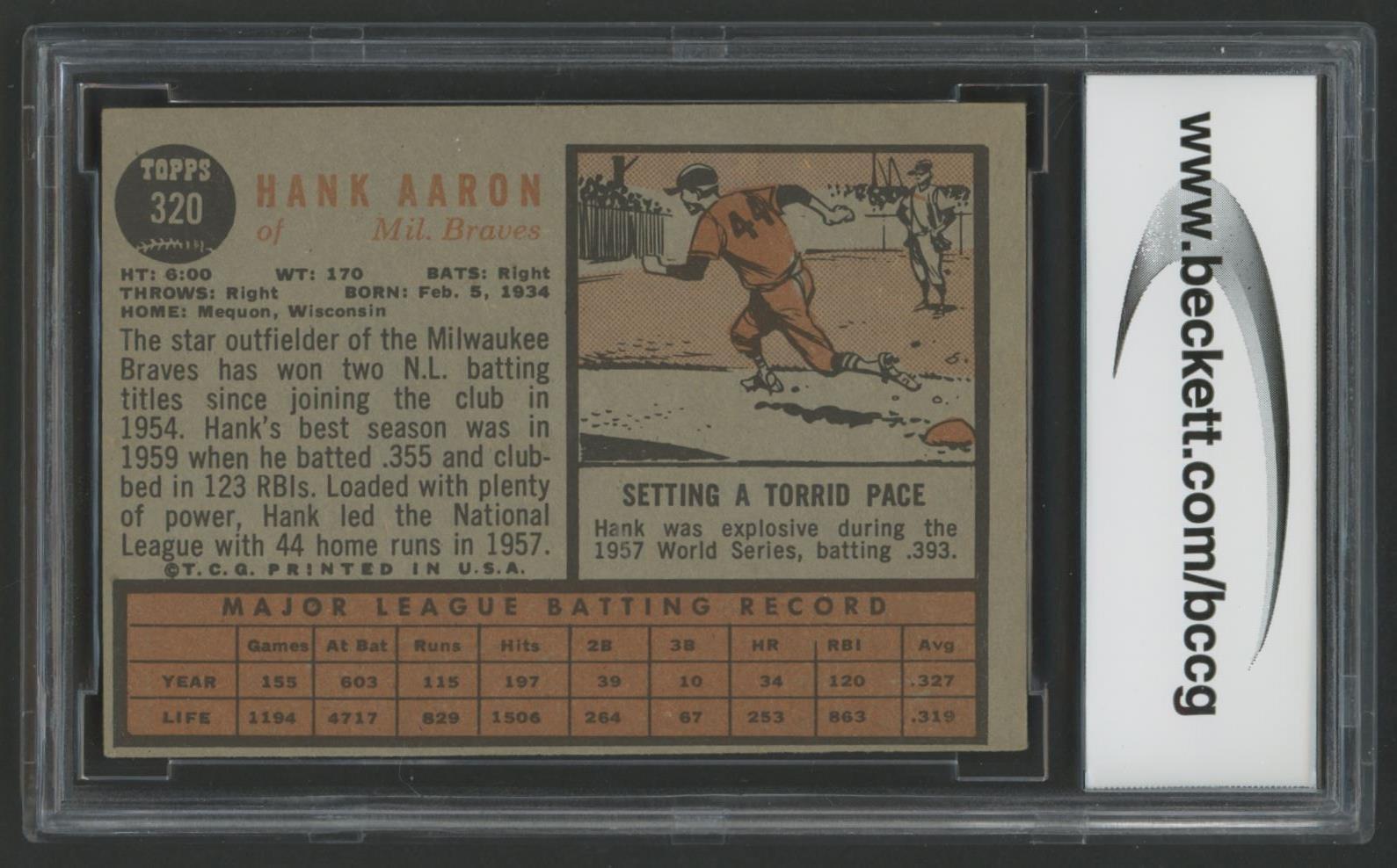 Hank Aaron 1962 Topps #320 (BCCG 8)