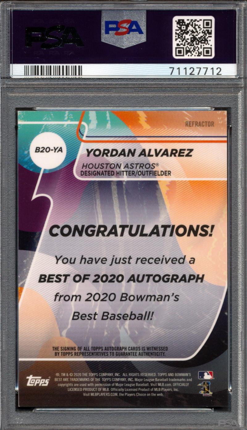 Yordan Alvarez 2020 Bowman's Best Best of '20 Autographs Refractors #B20YA (PSA 9)