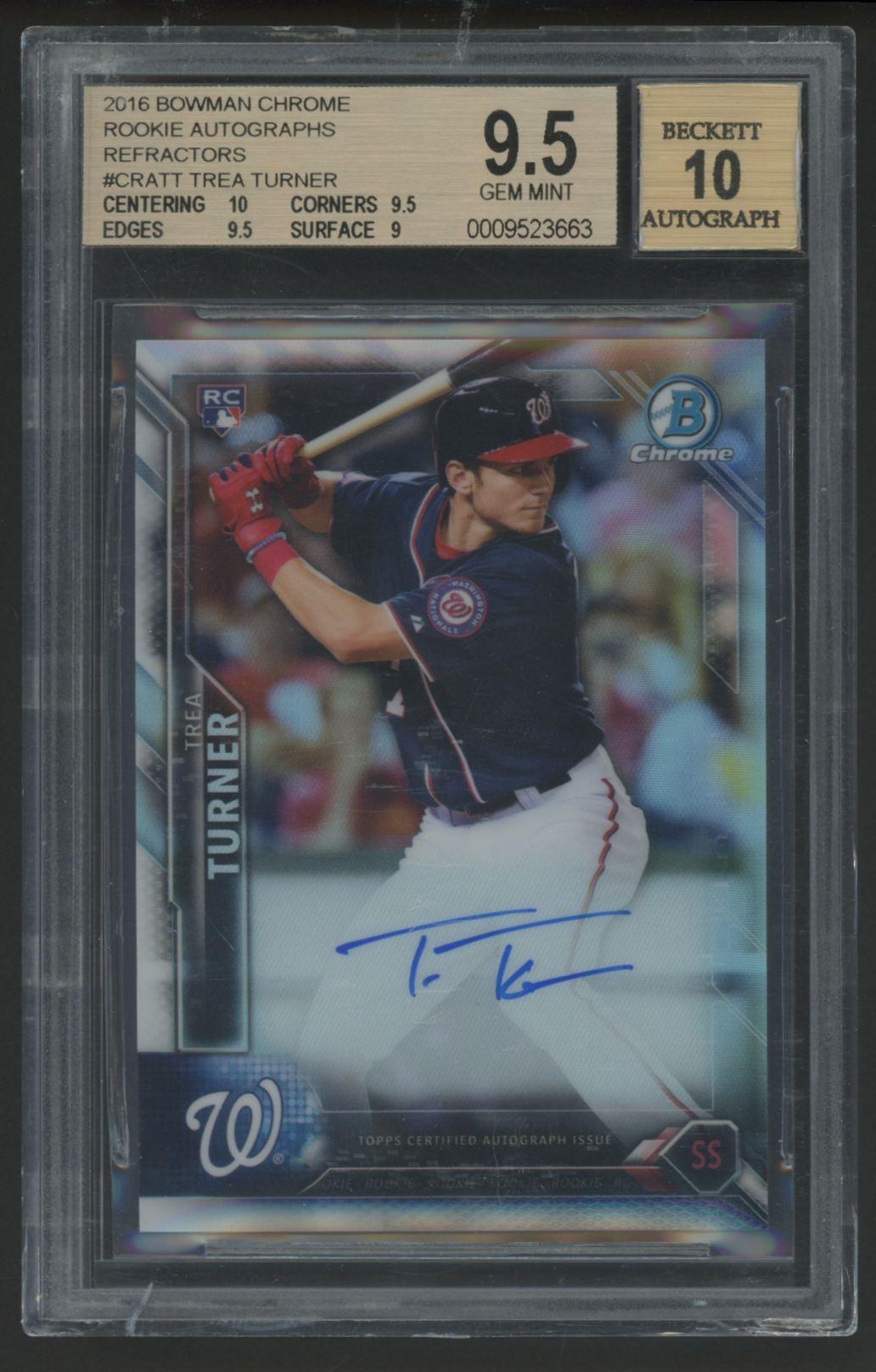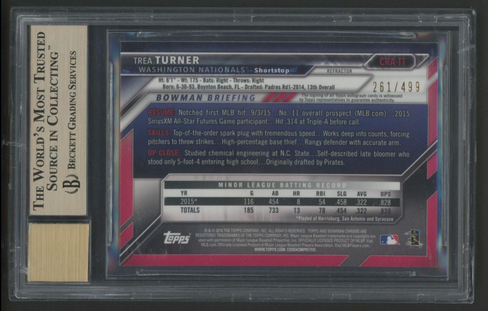 Trea Turner 2016 Bowman Chrome Rookie Autographs Refractors #CRATT #261/499 RC (BGS 9.5 | Auto 10)