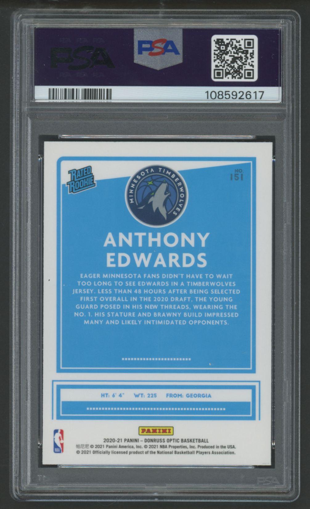 Anthony Edwards 2020 Donruss Optic RR #151 RC (PSA 9)