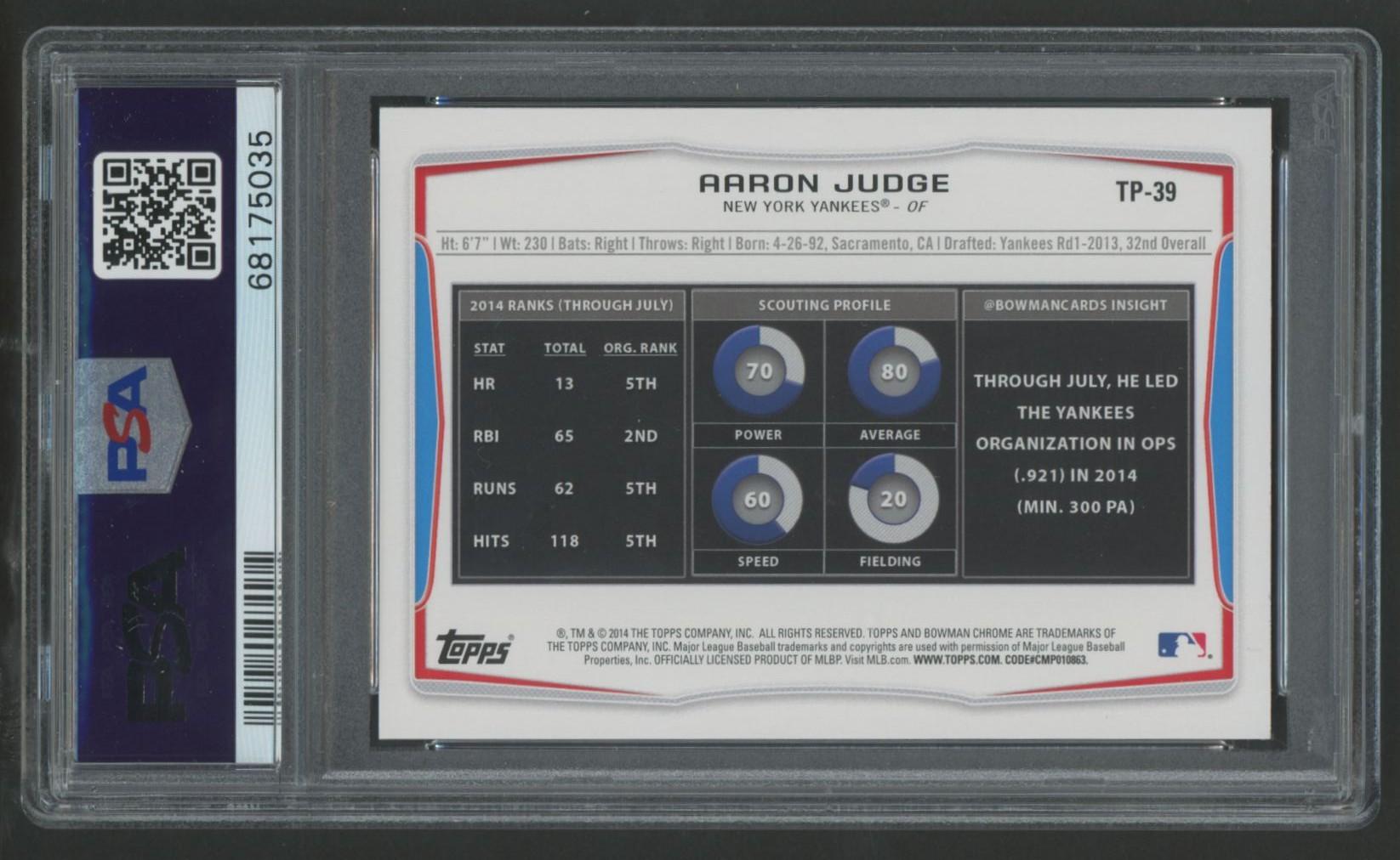 Aaron Judge 2014 Bowman Draft Top Prospects #TP39 RC (PSA 10)