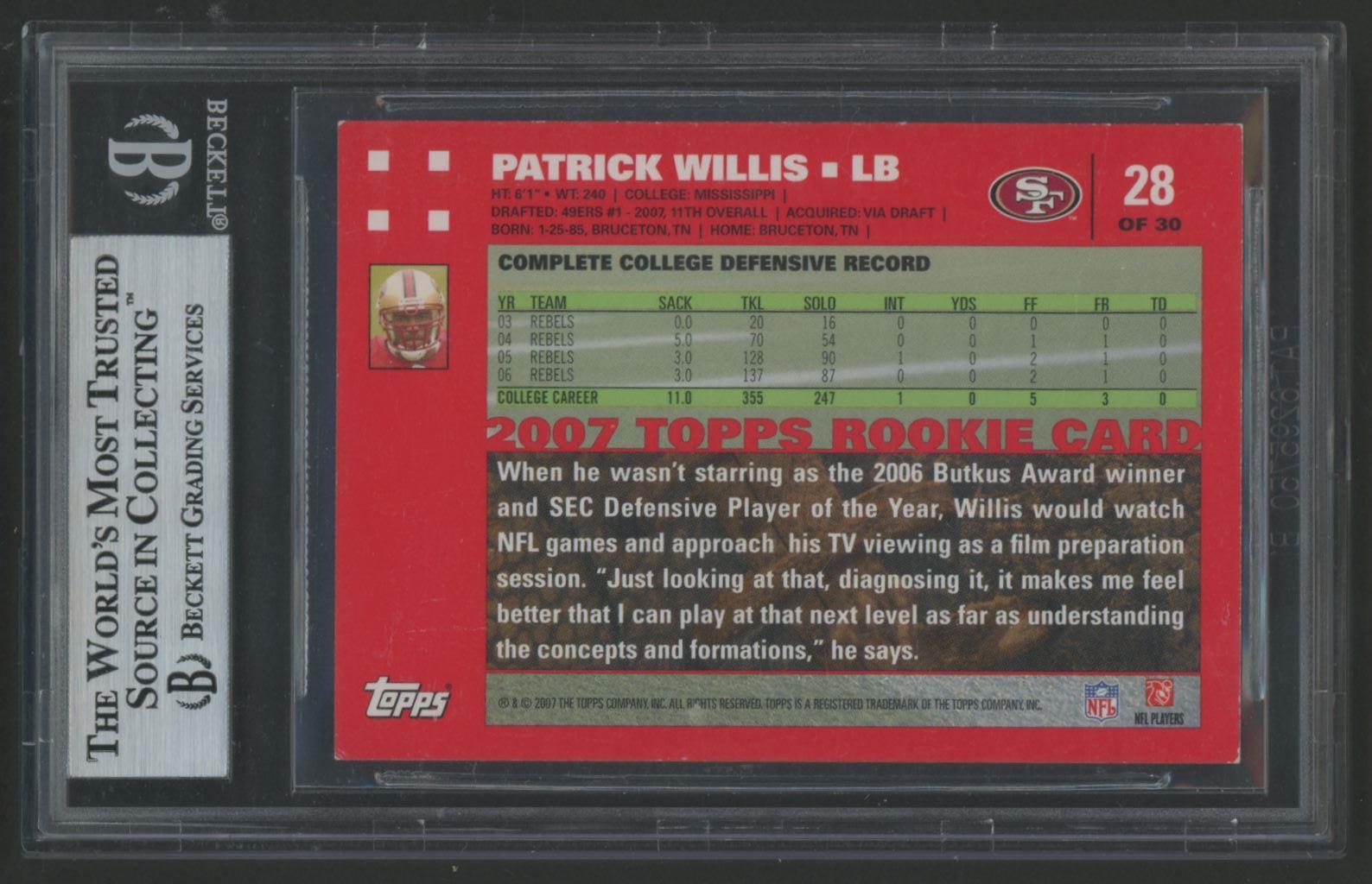 Patrick Willis Signed 2007 Topps Exclusive Rookies #28 (BGS)