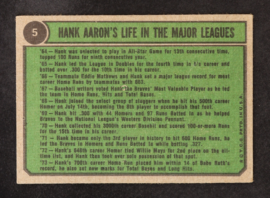 Hank Aaron 1974 Topps #5 66-69