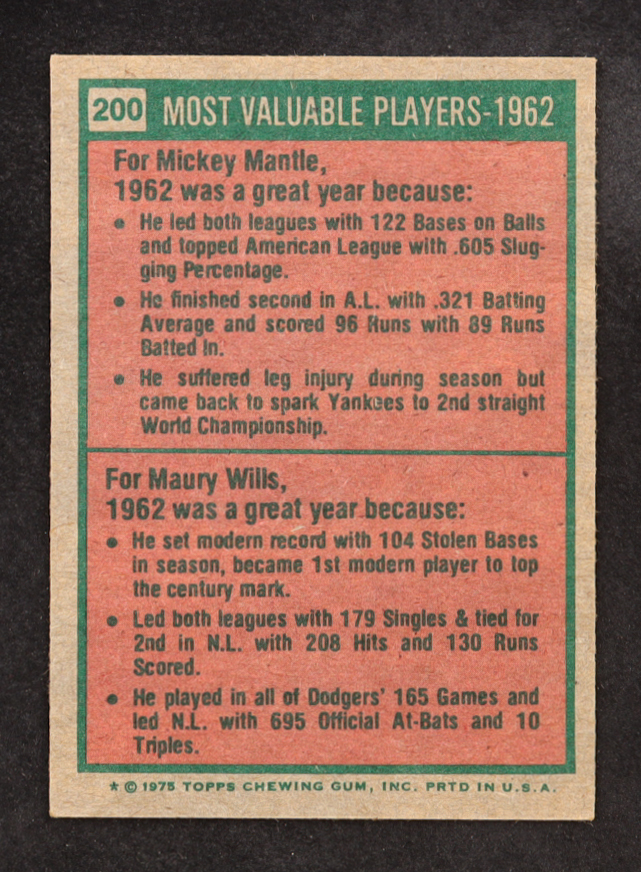 Mickey Mantle / Maury Wills 1975 Topps #200