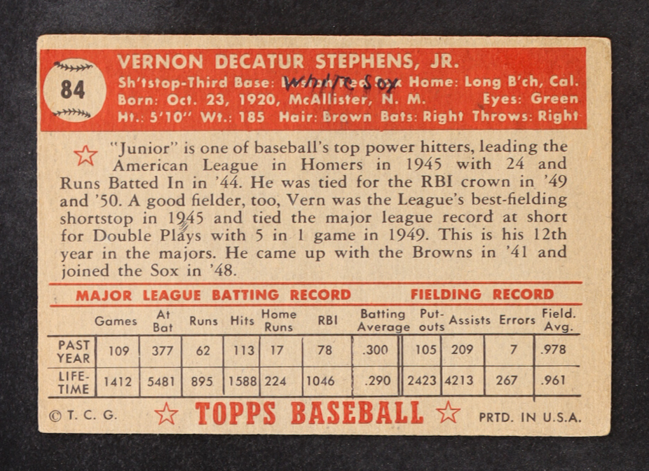 Vern Stephens 1952 Topps #84