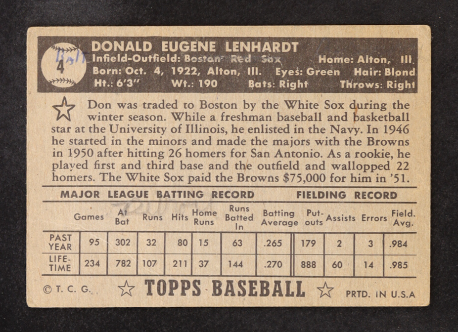 Don Lenhardt 1952 Topps #4
