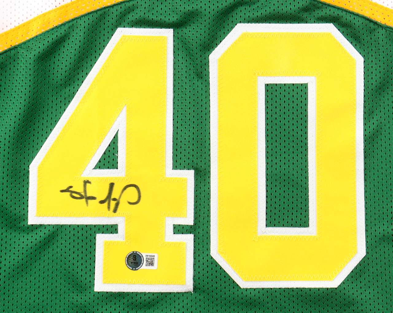 Custom jersey with everything sewn on, size XL. Hand-signed by Shawn Kemp.