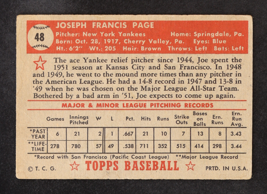 Joe Page 1952 Topps #48C Red Back