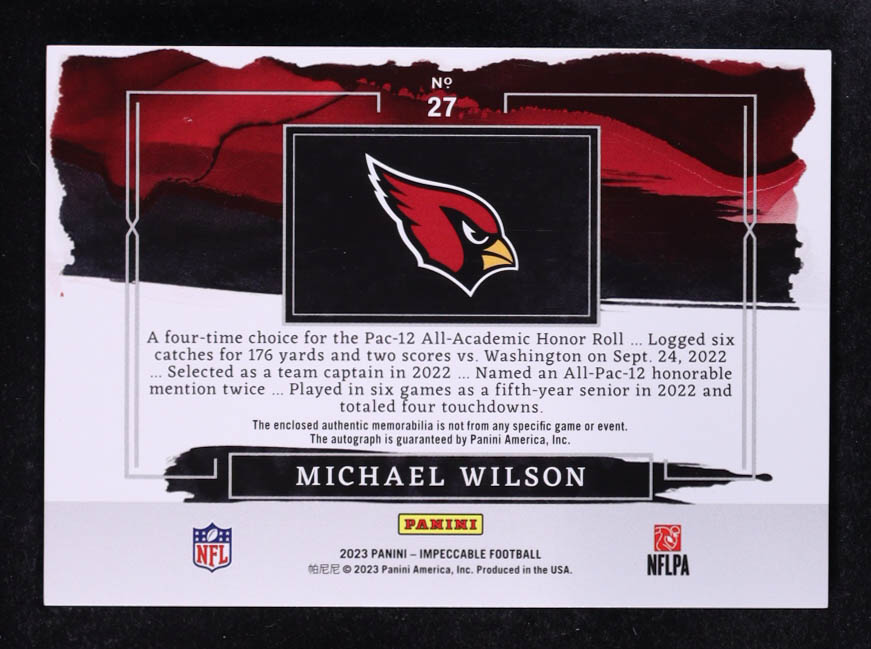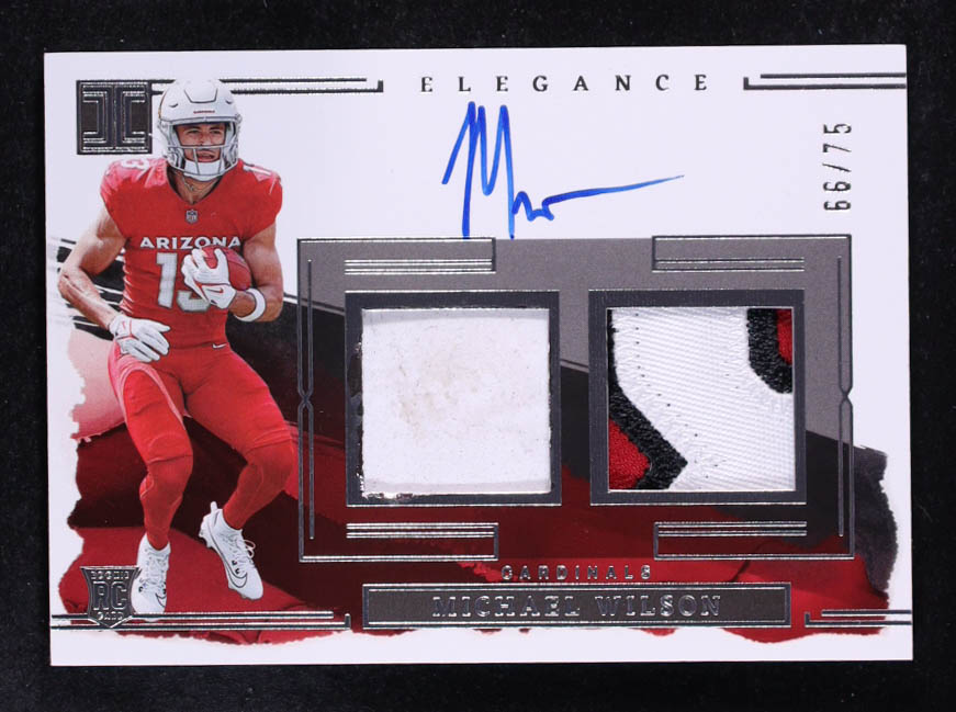 Michael Wilson 2023 Panini Impeccable Elegance Rookie Helmet and Patch Autographs #27 #66/75 RC