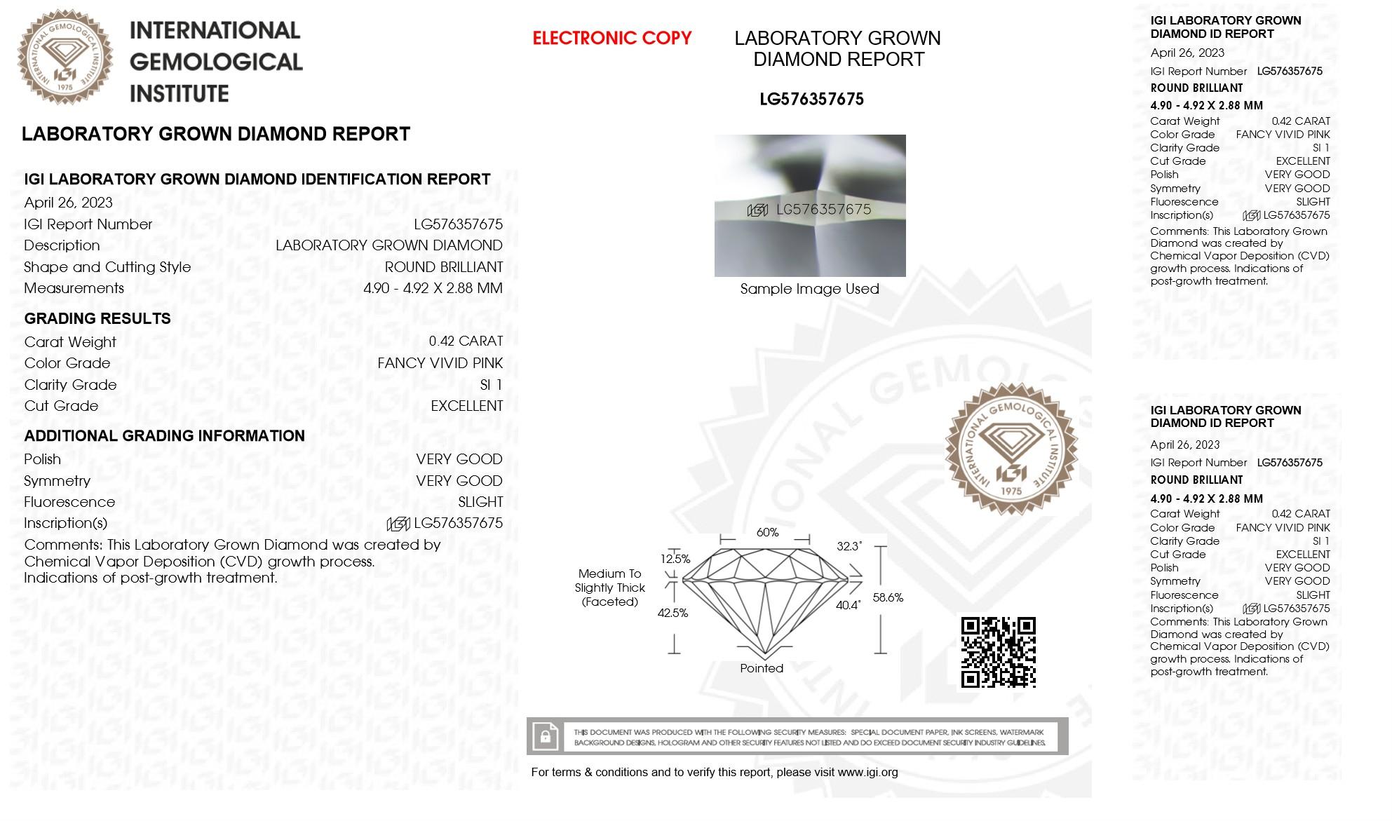 .42 Carats Lab Grown Pink Diamond Loose SI1 | (IGI Cert)