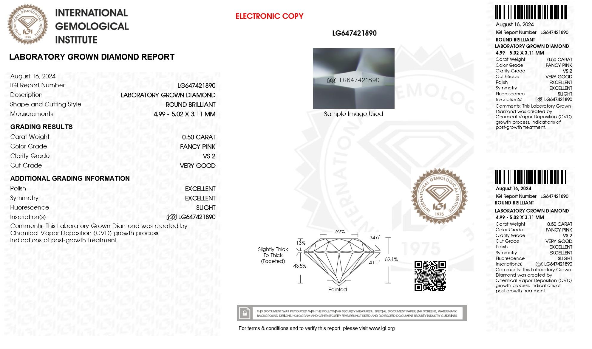 .50 Carats Lab Grown Pink Diamond Loose VS2 | (IGI Cert)