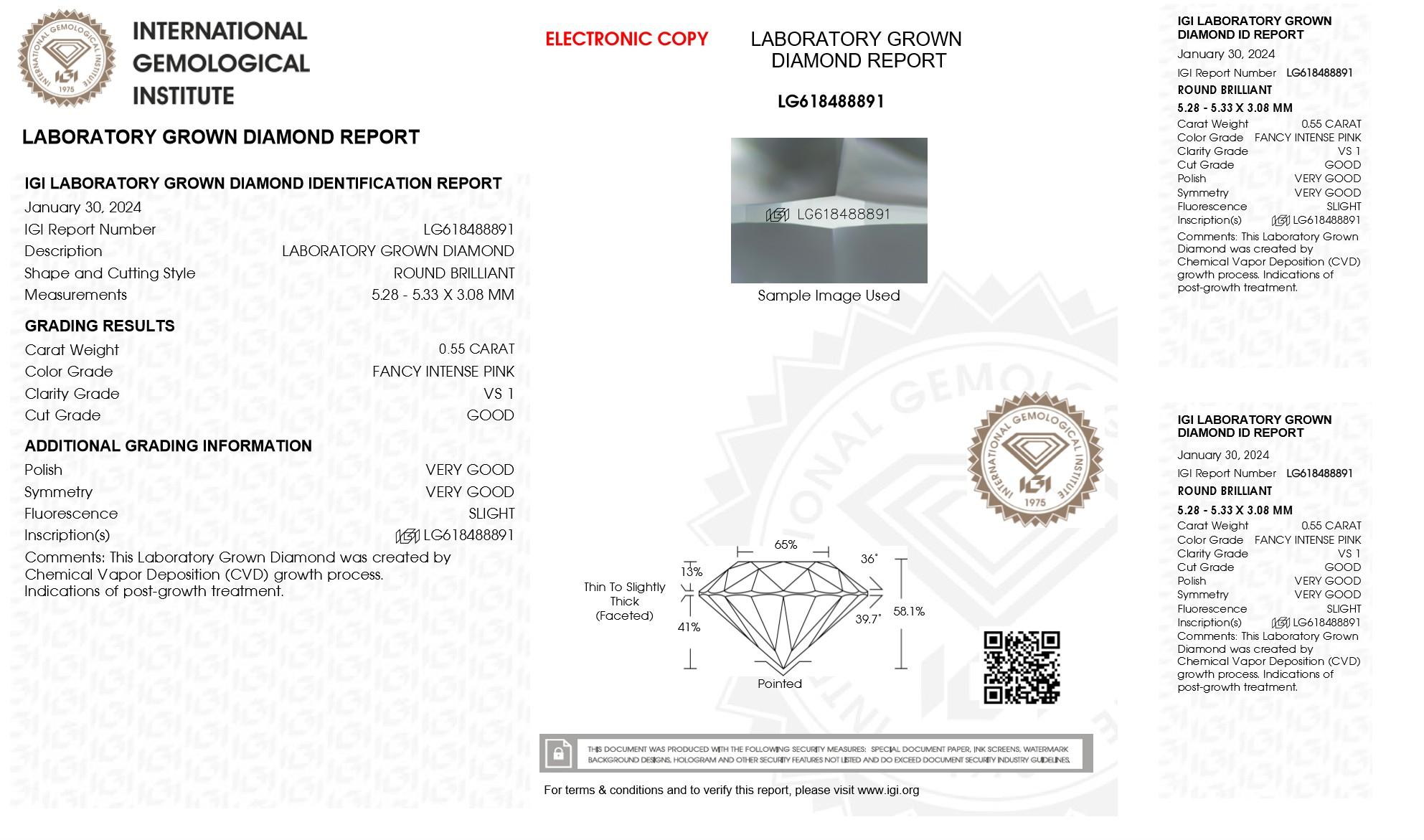 .55 Carats Lab Grown Pink Diamond Loose VS1 | (IGI Cert)