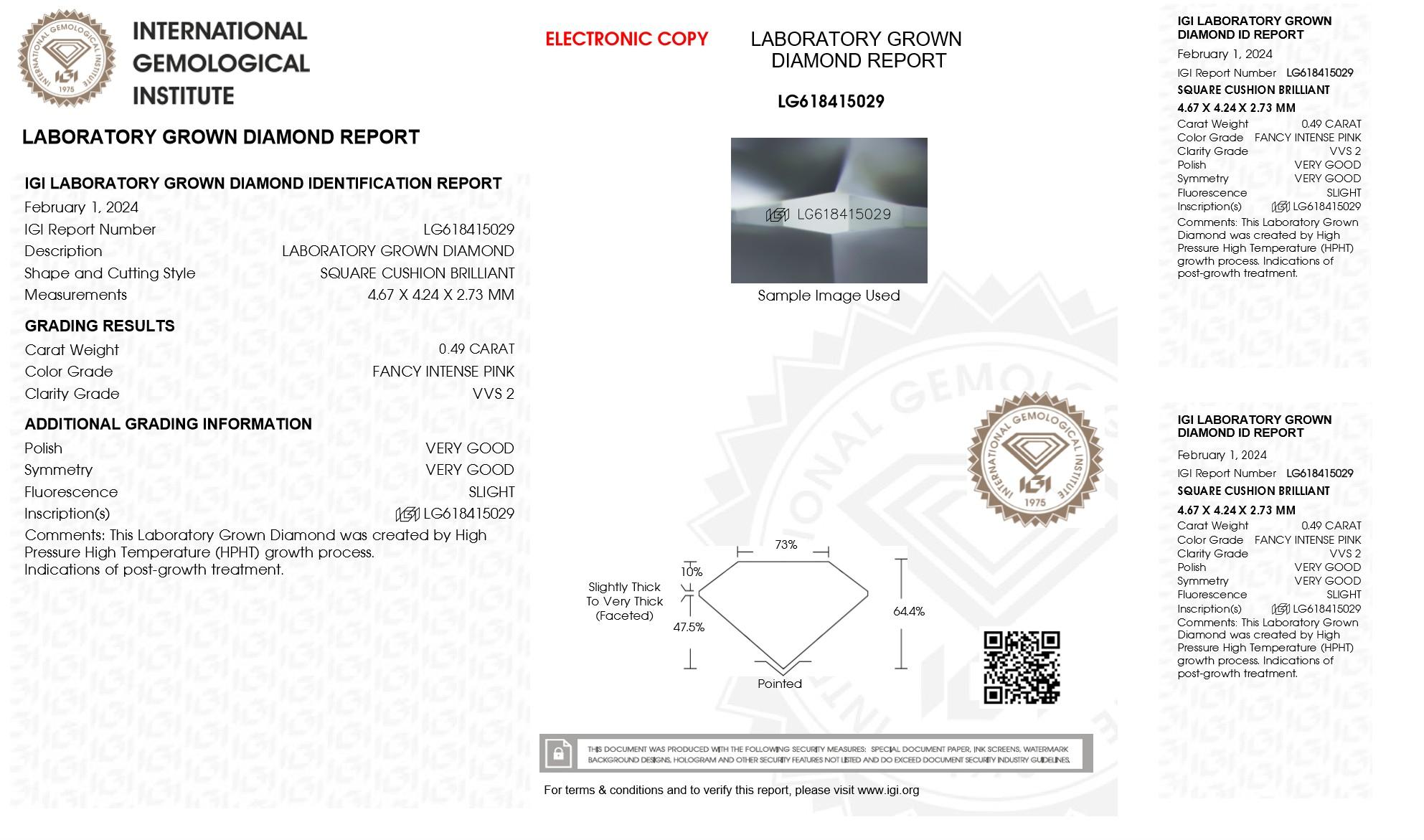 .49 Carats Lab Grown Pink Diamond Loose VVS2 | (IGI Cert)