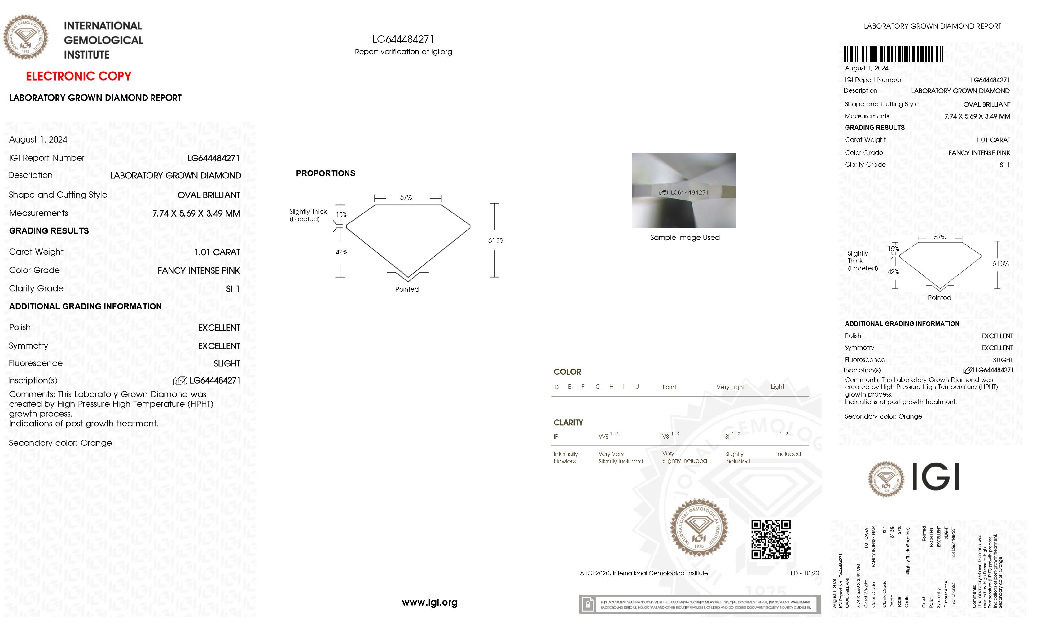 1.01 Carats Lab Grown PINK Diamond Loose SI1 | Estimated Retail Value: $1,900 (UGL & IGI Certs)