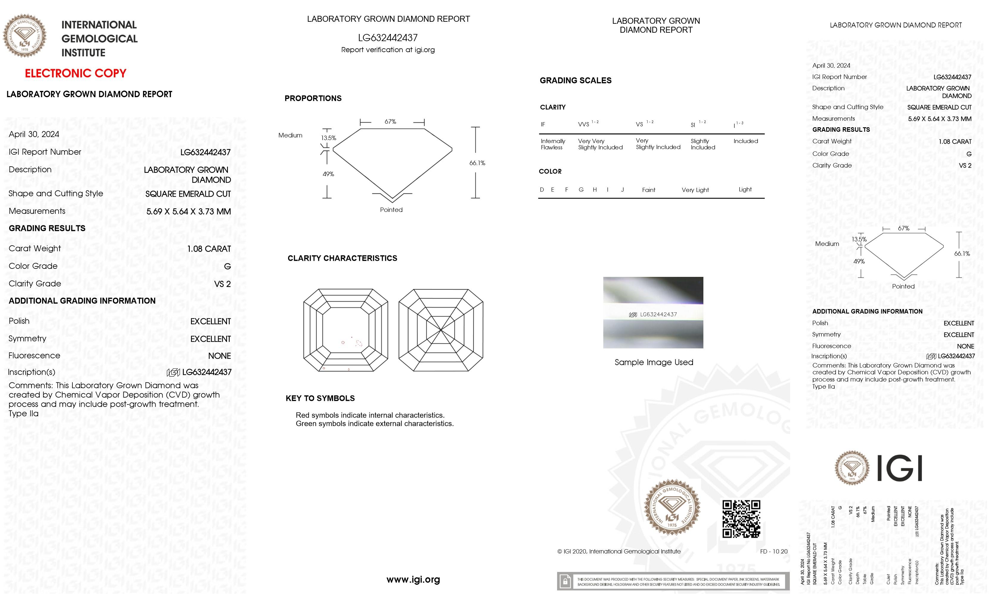 1.08 Carats Lab Grown Diamond Loose G, VS2 | Estimated Retail Value: $1,600 (UGL & IGI Certs)