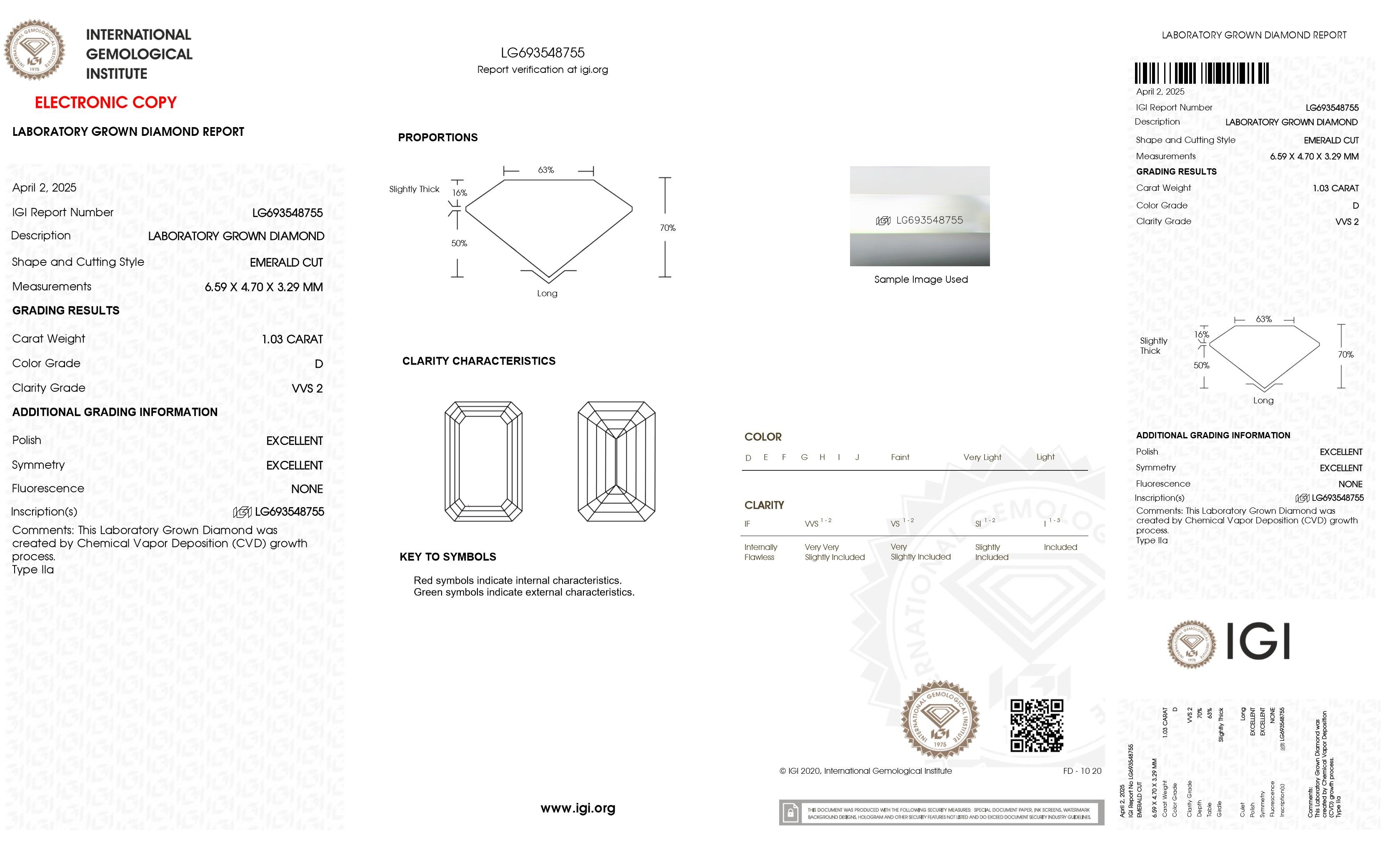 1.03 Carats Lab Grown Diamond Loose D, VVS2 | Estimated Retail Value: $1,500 (UGL & IGI Certs)