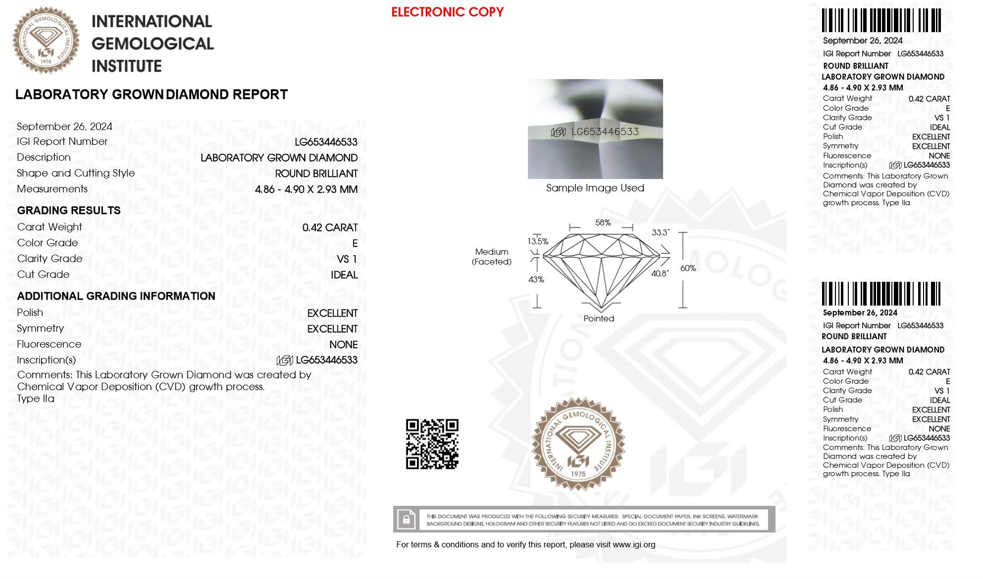 The diamond features a precision laser inscription of the IGI certificate number, ensuring authenticity and traceability.