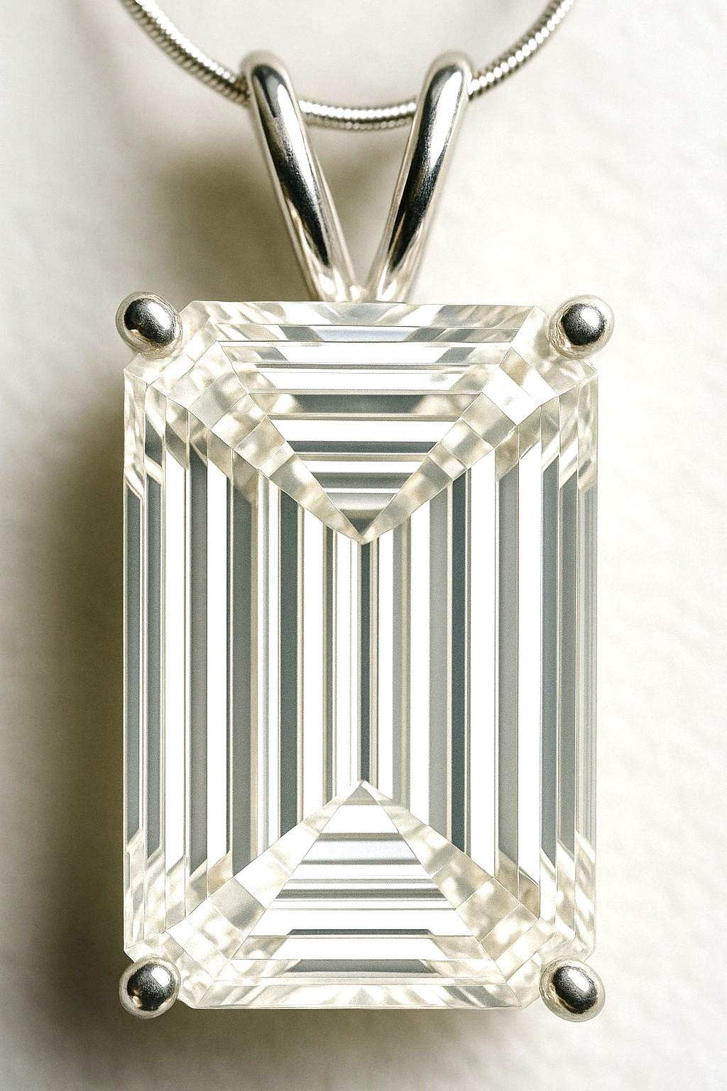 One New Emerald Cut Diamond Solitaire Pendant. Mounting is Made of Sterling Silver.