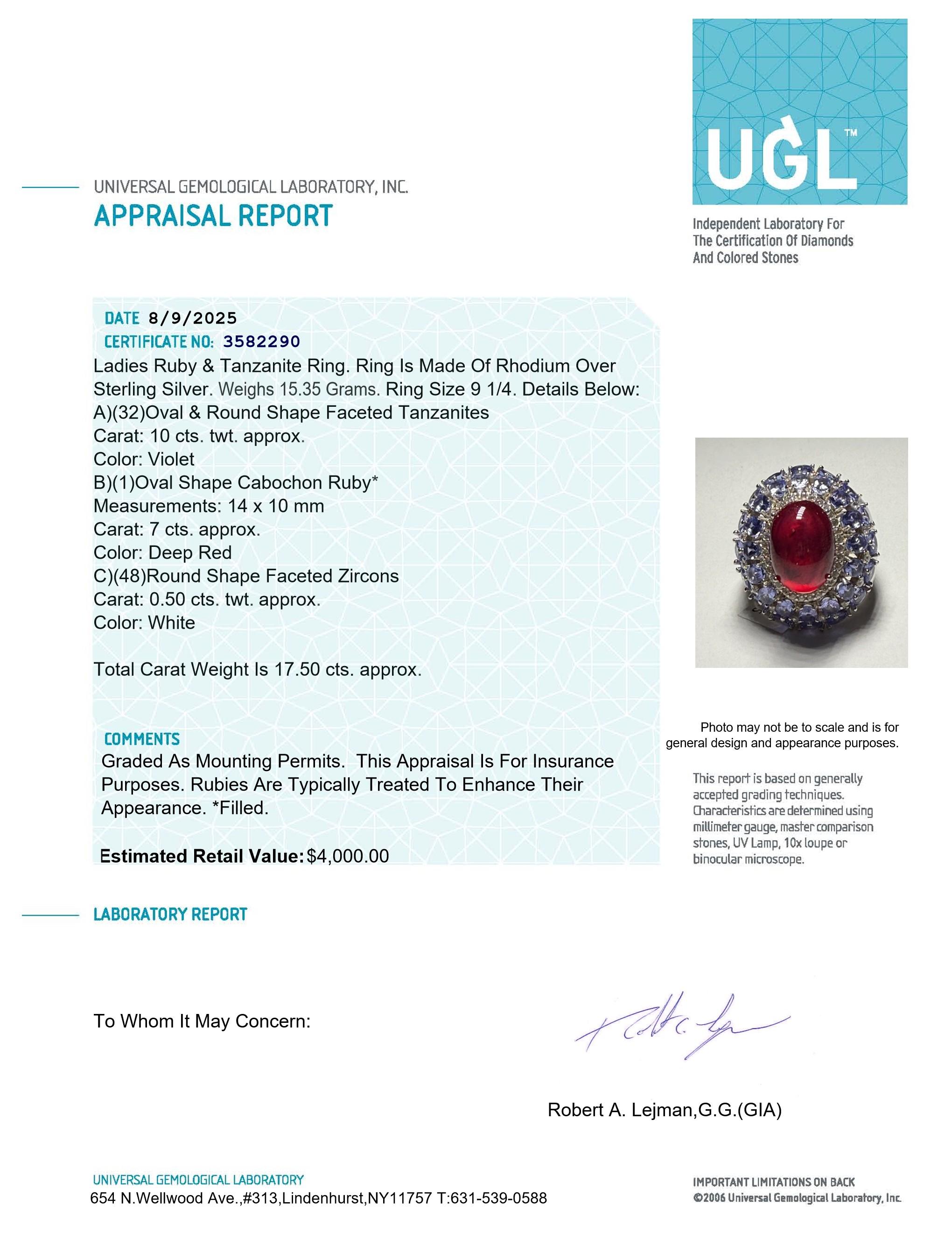 New 17.50 CTW Ruby & Tanzanite Ring | Estimated Retail Value: $4,000 (UGL)