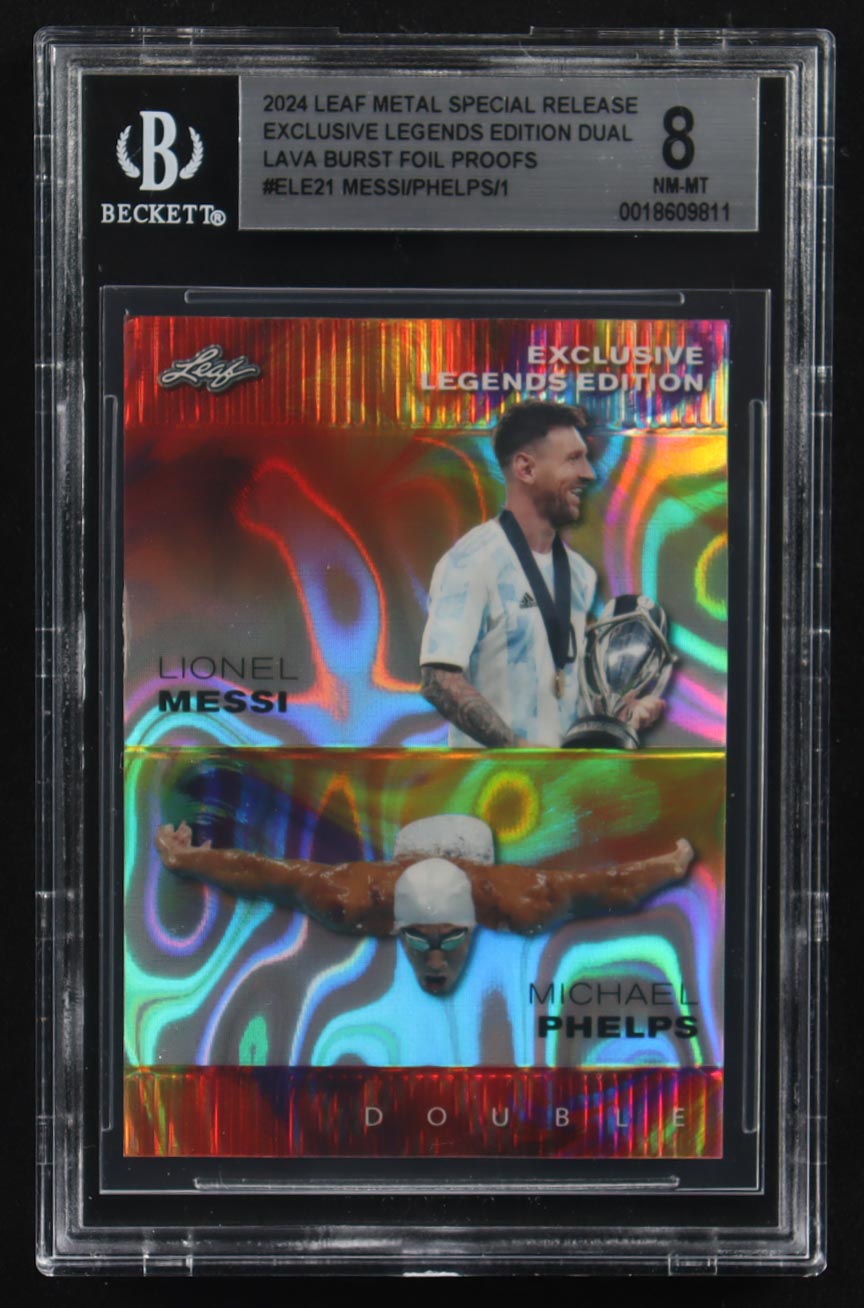 Lionel Messi / Michael Phelps 2024 Leaf Metal Special Release Exclusive Legends Ed. Dual Lava Burst Foil Proofs #ELE21 (BGS 8)