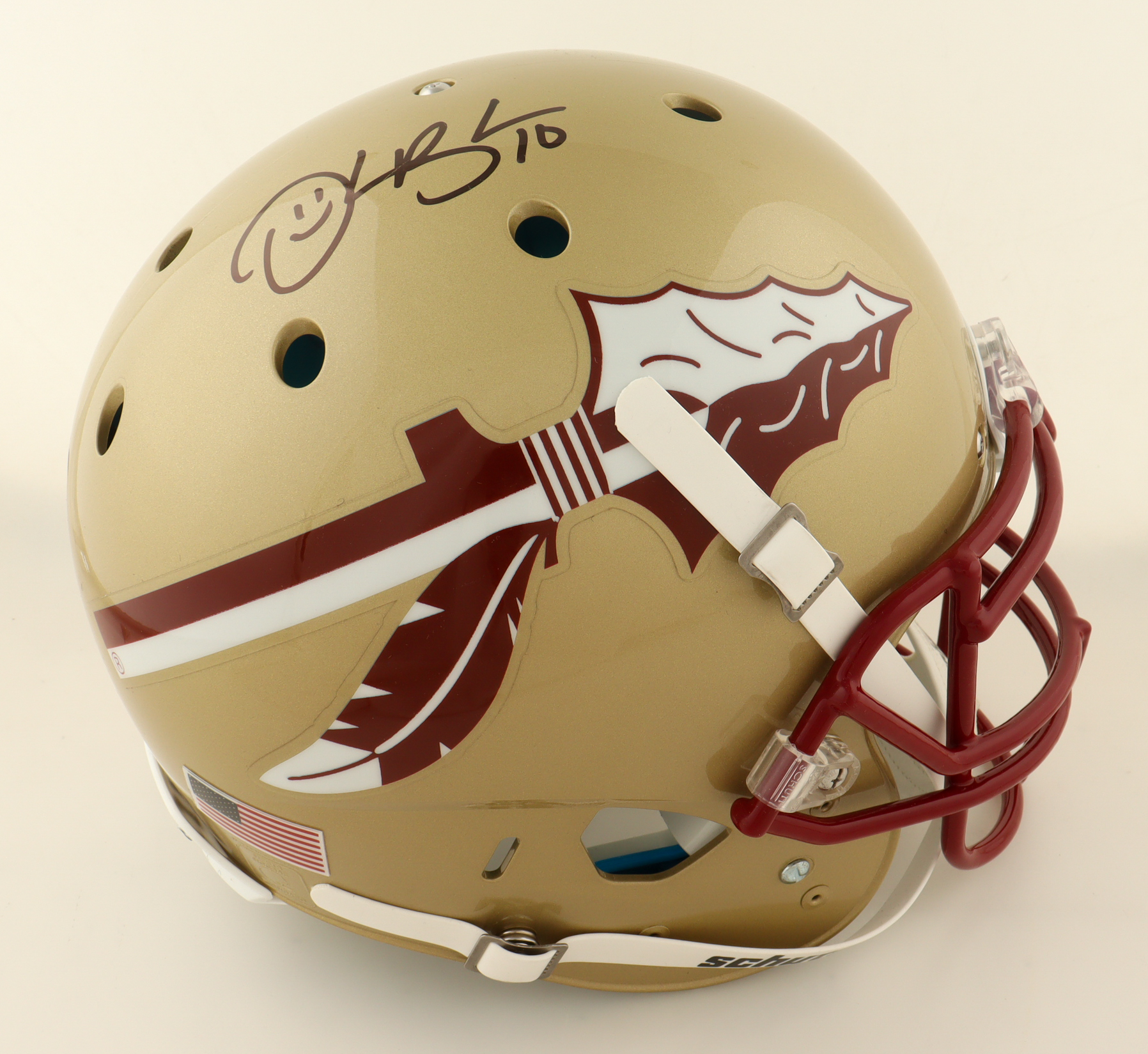 Schutt Florida State Seminoles full-size Authentic On-Field helmet. Has been hand-signed by Derrick Brooks (HOF).